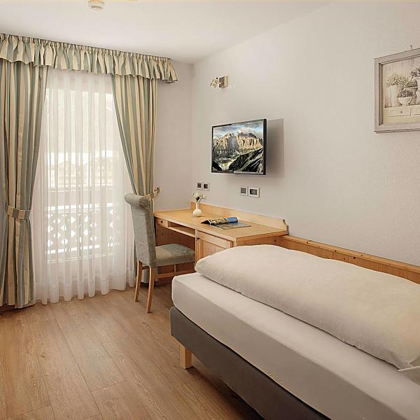 Unsere Einzelzimmer sind nach Norden ausgerichtet und haben eine wunderschöne Aussicht auf den Sassongher.