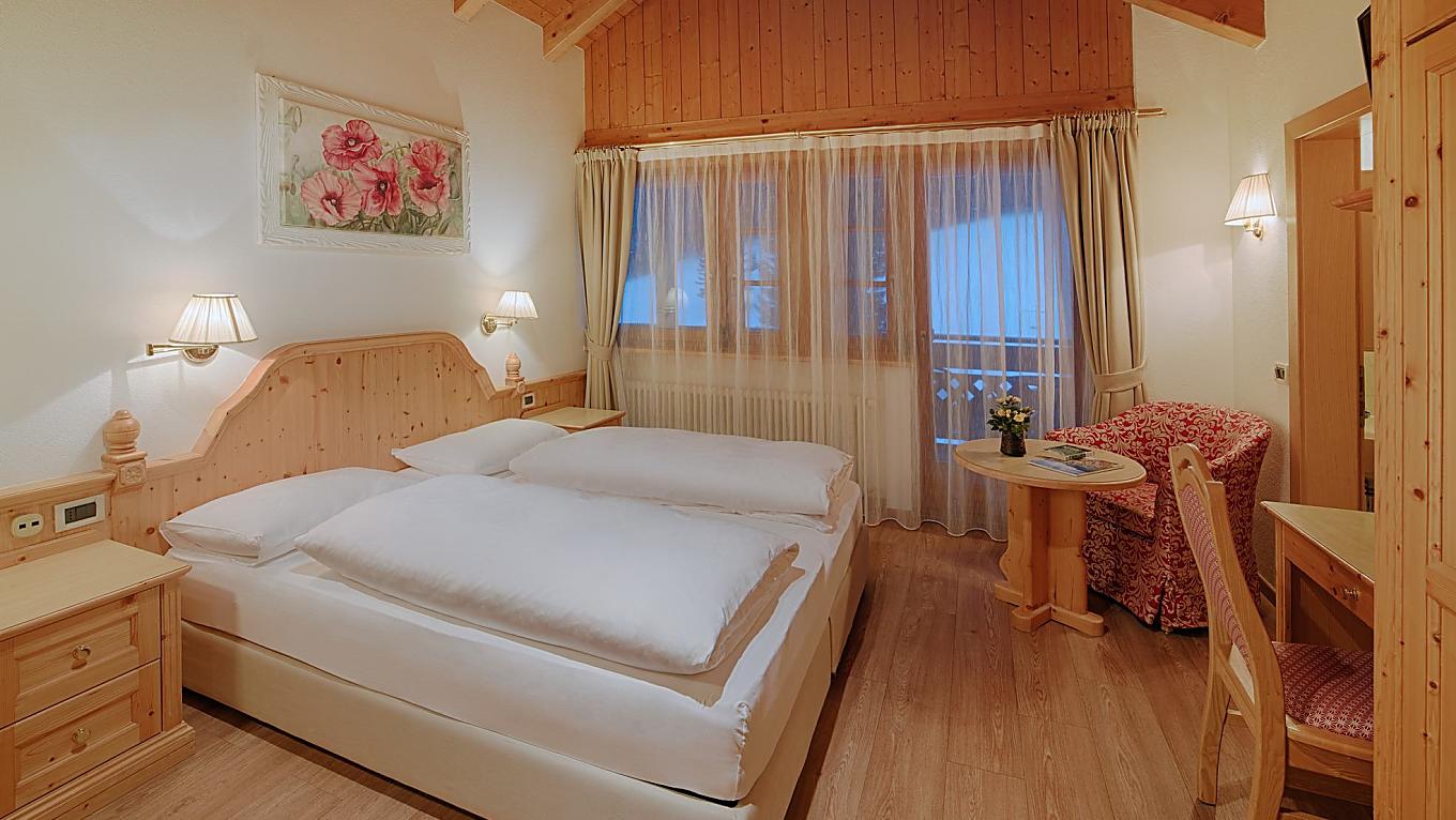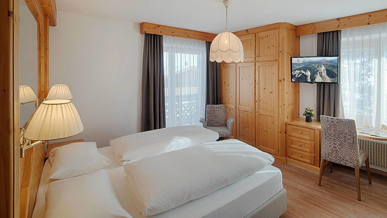 Our Comfort rooms are west facing, with a view of the Sella Mountain Group and Gardena Pass, or…