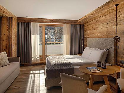 Our Comfort rooms are west facing, with a view of the Sella Mountain Group and Gardena Pass, or…
