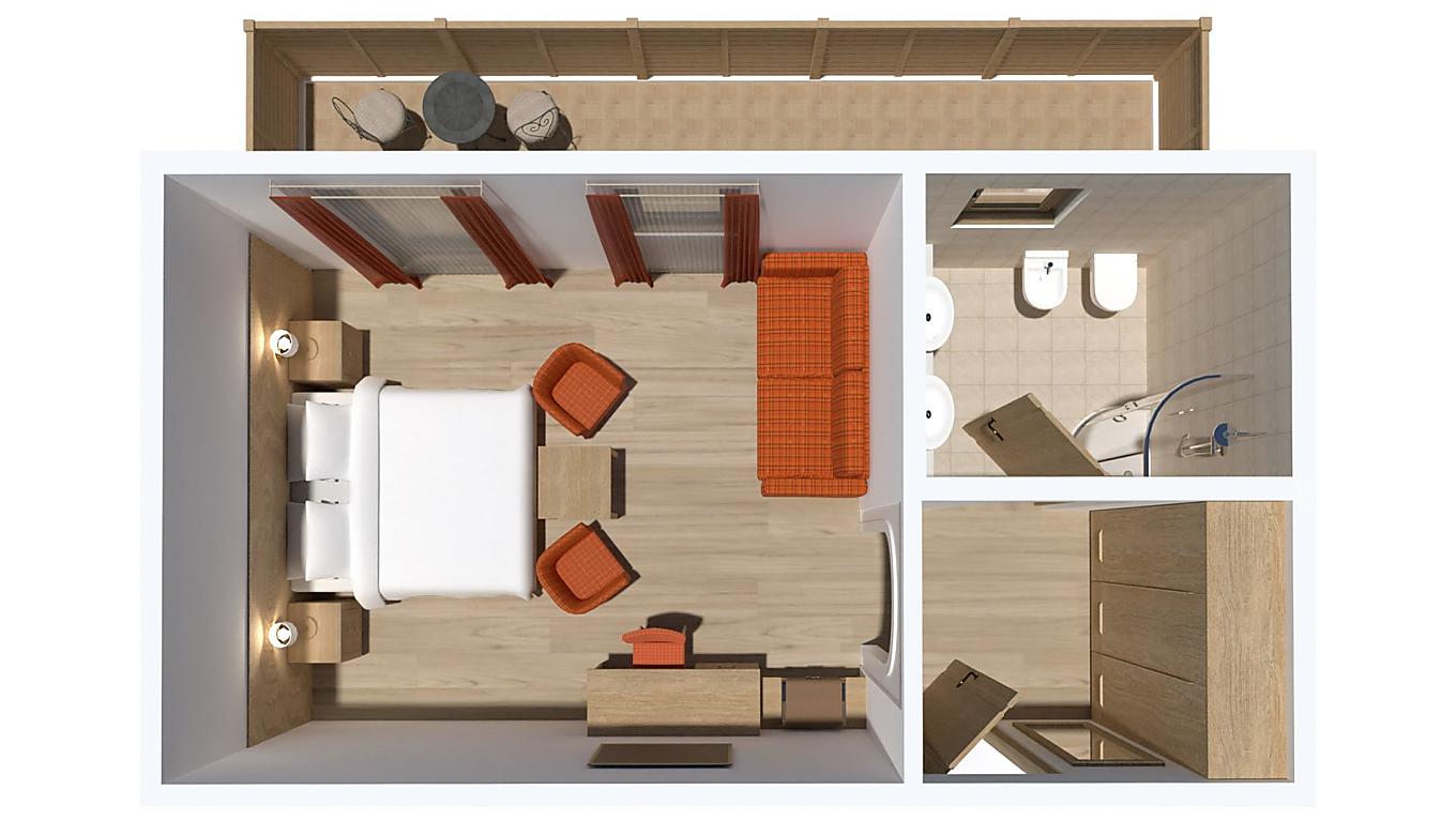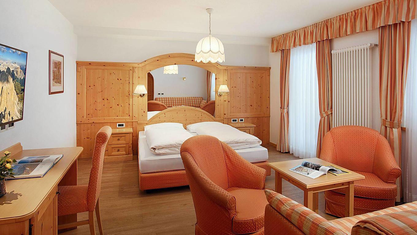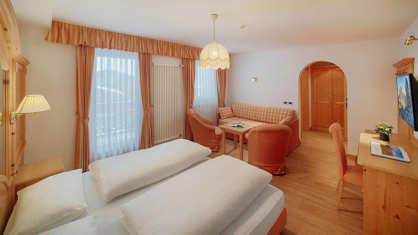 Le nostre camere Superior sono esposte ad est verso il bosco dietro all'hotel. L'arredamento è in legno chiaro, i pavimenti sono in parquet.