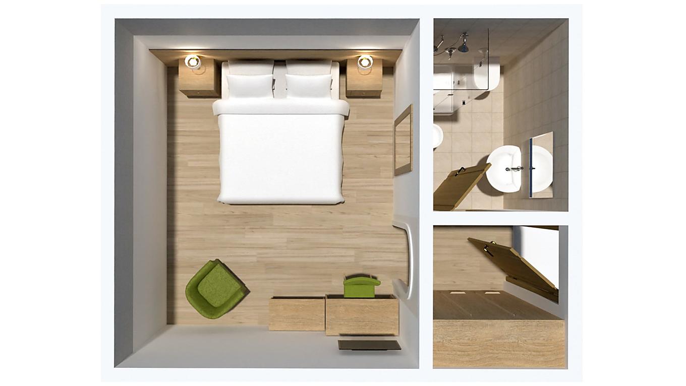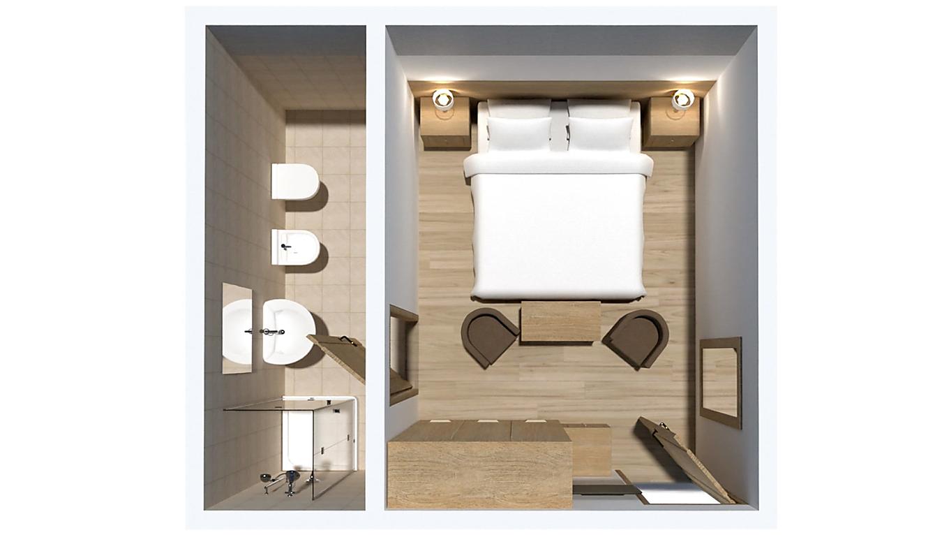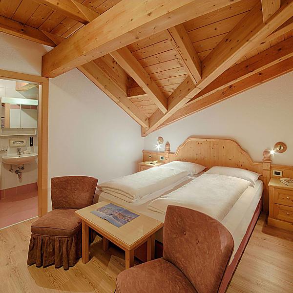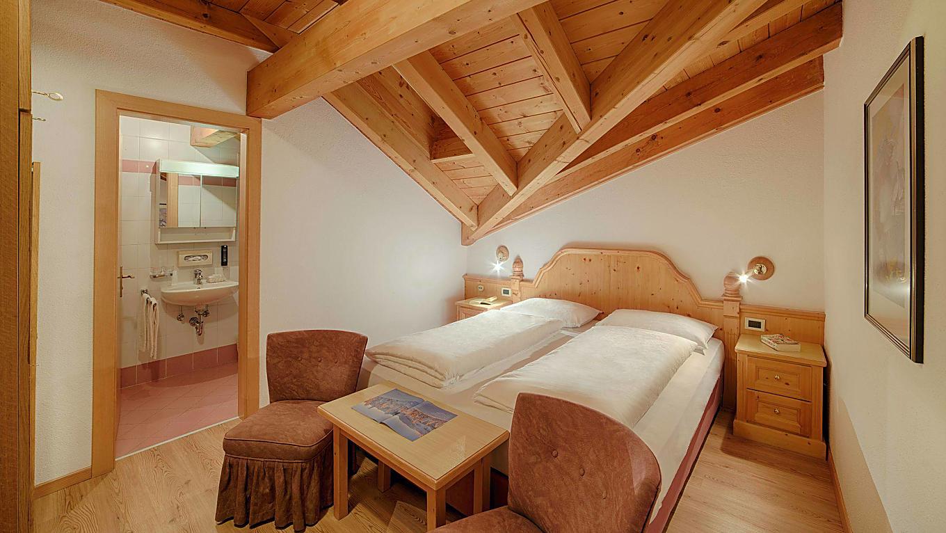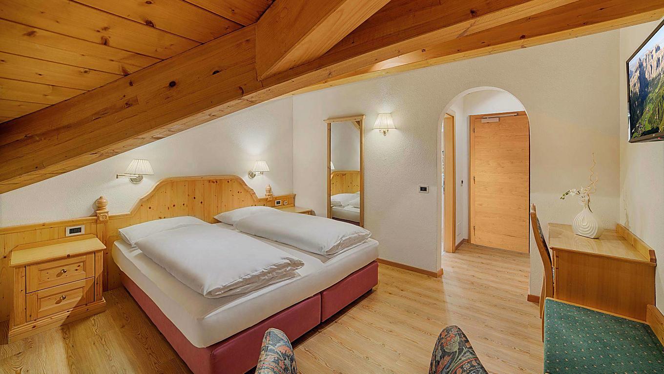 Le mansardine non hanno il balcone ma un lucernario a soffitto. L'arredamento è in legno chiaro, i pavimenti sono in parquet.